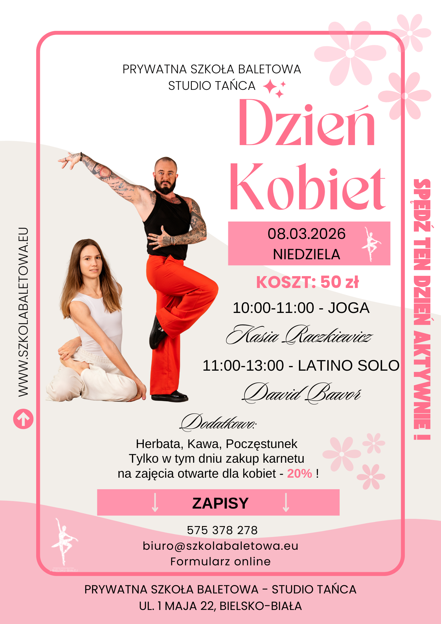 25 lutego 2026 Autor: szkola_baletowa 0 Comments Aktualności Zapraszamy na Dzień Kobiet! 8.03.2026 CZYTAJ WIĘCEJ